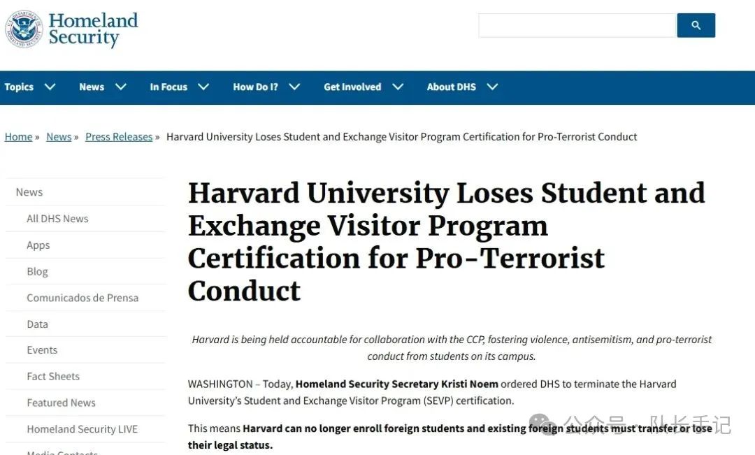 5月22日,特朗普政府一紙公文,宣佈取消哈佛大學“學生和交流訪問學者項目”(SEVP)認證,暫停哈佛再招收國際學生,並且還通知了目前就讀的國際學生,必須立馬轉學,否則將失去合法身份。