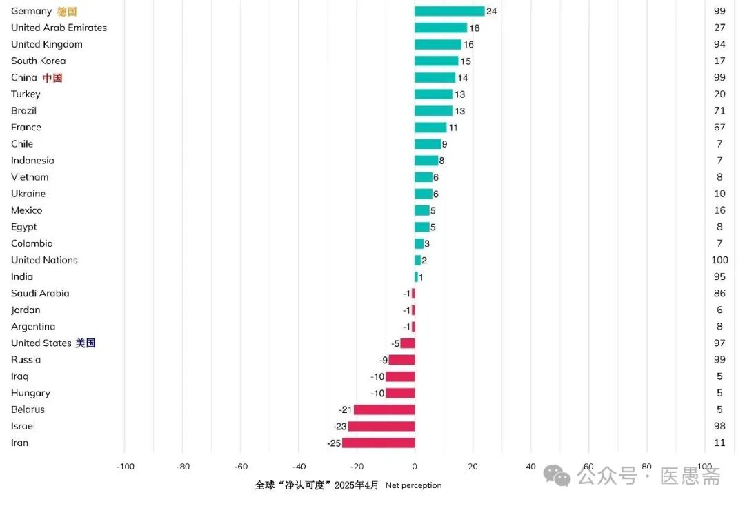 Brand Finance 每年都會在全球抽選10 萬名受訪者,瞭解他們對不同國家及其影響力的看法。2021 年中國在全球軟實力"品牌 “榜上還排名第八,2025年已上升到第二位。