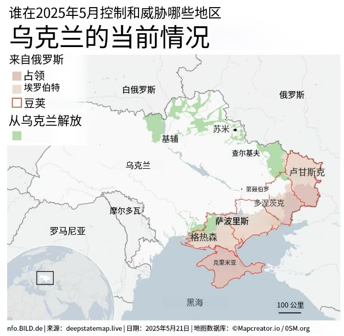 德國圖片報援引軍事專家警告稱,俄羅斯的目標是將其目前攻佔的領土擴展到蘇梅、哈爾科夫和第聶伯羅彼得羅夫斯克。
