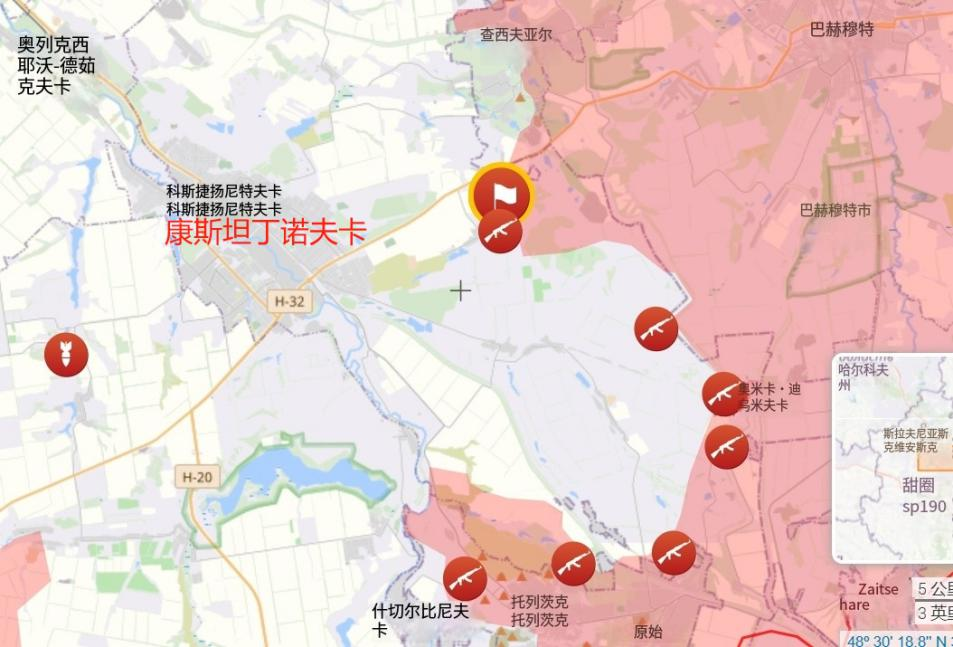康斯坦丁諾夫卡方向,南線俄軍近20摩托化師和132旅、150摩步師正面硬吃烏軍最精鋭的部隊之一的第93旅,目前看防禦第93旅側後方向的烏軍109旅有被打崩的跡象,烏軍第93旅要再補跑可能會被包餃子。俄軍因為補給問題,應該會先拿下H20公路北段,正好前面有個湖可以威脅乃至包圍H20東側的烏軍。