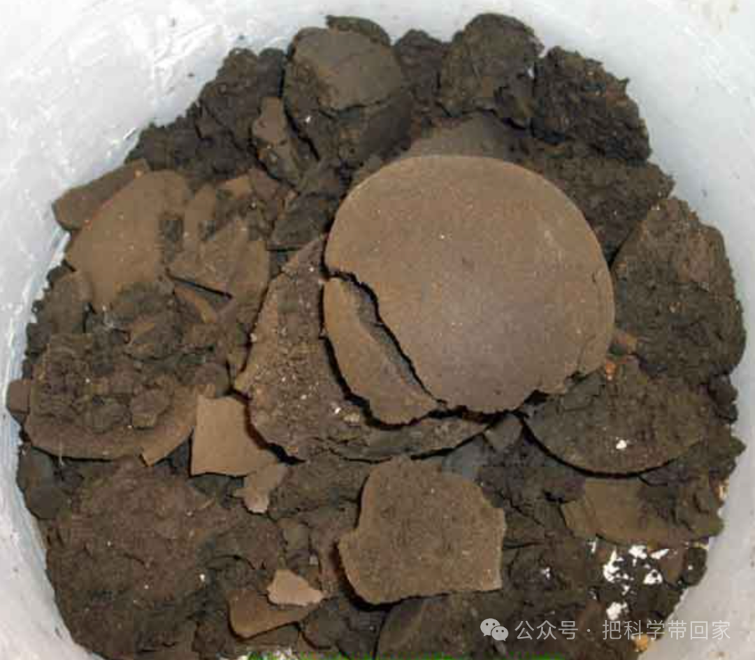 不過,想要用泥巴打磨一個光滑的糰子並不容易,首先需要團一個儘可能圓的球,晾半乾後再在外部裹上一層細土,形成外殼。最後再經過精心打磨,就可以得到一個光滑的泥球了。這是微小的粘土粒子緊密排列,最後產生的有光澤的效果。