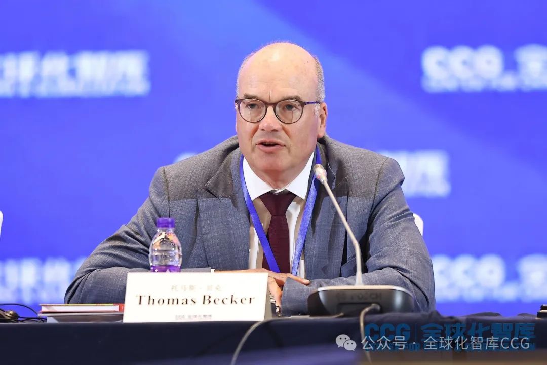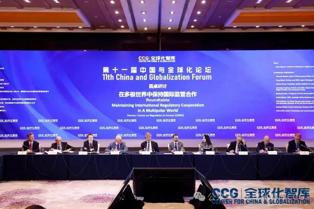 會議期間,歐盟歐洲監管中心研究主任扎克·邁耶斯(Zach Meyers)擔任主持人,寶馬集團政府事務副總裁托馬斯·貝克(Thomas Becker),德國阿戈拉戰略研究所合夥人兼CEO蒂姆·布倫克(Timo Blenk),意大利國際政治研究所所長弗朗科·布魯尼 (Franco Bruni),德國全球解決方案倡議合夥人兼CEO、德國數字社會和消費者政策原國務秘書克里斯汀·愷斯托普(Christian Kastrop),德國柏林自由大學教授康保鋭(Berthold Kuhn),澳中商業委員會塔州分會首席執行官、CCG特邀高級研究員大衞·莫里斯(David Morris),歐盟亞洲中心聯席主席、聯合國副秘書長兼環境規劃署原執行主任埃裏克·索爾海姆(Erik Solheim),歐盟地區委員會原秘書長格哈德·施塔爾(Gerhard Stahl),隆基綠能北美首席戰略市場官格蕾斯·孫(Grace Sun)聚焦碳核算等環境標準合作、如何緩解監管分歧等話題,深入探討國際社會在綠色轉型、數字監管、產業政策協調等領域的合作潛力與挑戰。