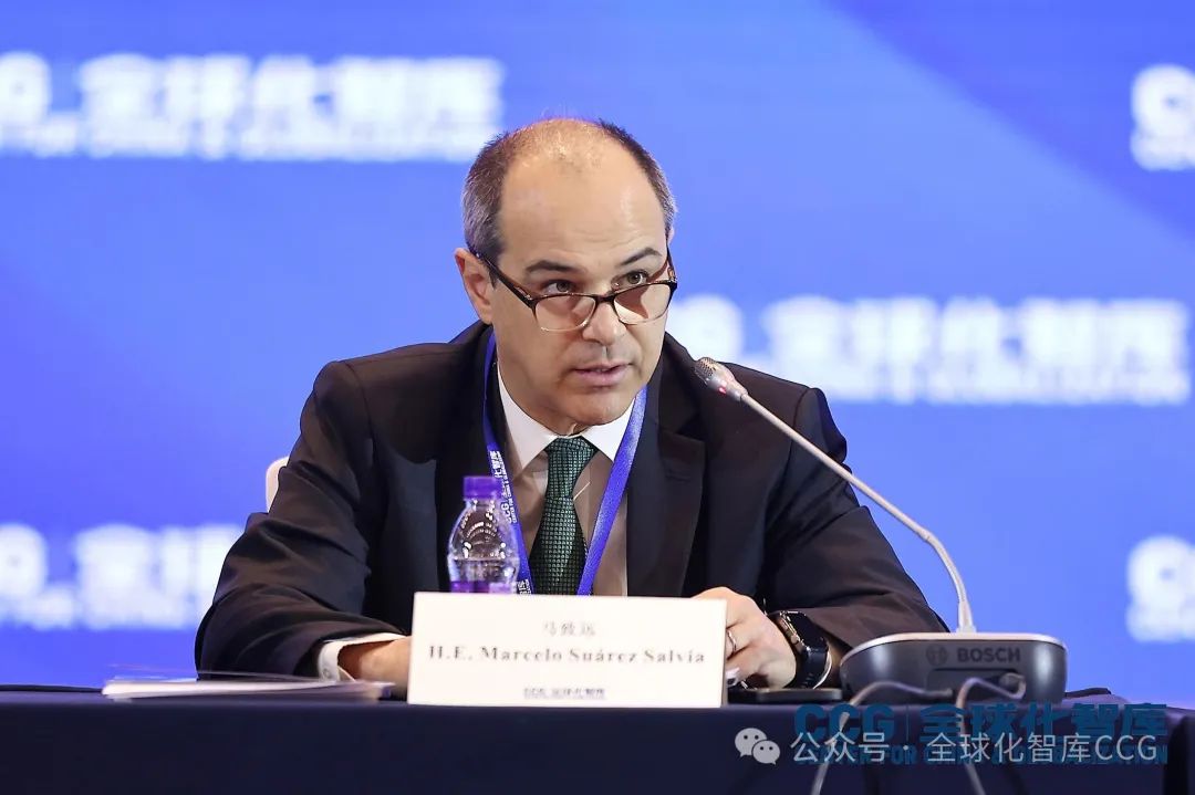 非盟駐華大使拉赫曼塔拉·默罕默德·奧斯曼(H.E. Rahamtalla M. Osman),非盟駐華大使拉赫曼塔拉·默罕默德·奧斯曼(H.E. Rahamtalla M. Osman),德國駐華大使館代辦葛若海(Dr. Stephan Grabherr),愛爾蘭駐華大使歐博仁(H.E. Nicholas O’Brien),葡萄牙駐華大使保羅·納西門託(H.E. Paulo Jorge Nascimento),西班牙駐華大使瑪爾塔·貝坦索斯(H.E. Marta Betanzos Roig),中國美國人民友好協會副會長,中國駐紐約、芝加哥原總領事黃屏大使,挪威駐華大使戴偉恩(H.E. Vebjørn Dysvik),澳大利亞駐華大使吉思德(H.E. Scott Dewar),阿根廷駐華大使馬致遠(H.E. Marcelo Suárez Salvia)在會上分享了各自的觀察與見解。