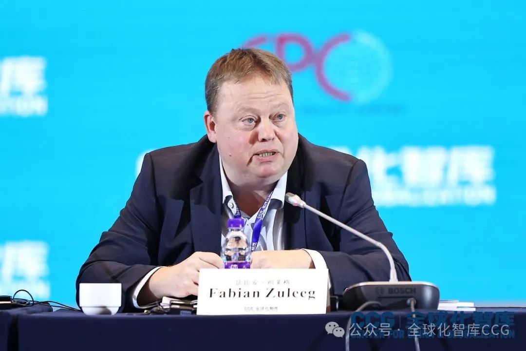 歐盟駐華大使庹堯誨(H.E. Jorge Toledo Albiñana),中國駐歐盟使團原公使彭剛,CCG高級研究員、商務部歐洲司原司長孫永福,歐盟歐洲政策中心首席執行官、首席經濟學家法比安·祖萊格(Fabian Zuleeg),CCG特邀高級研究員、北京外國語大學區域與全球治理高等研究院教授、歐盟與區域發展研究中心主任崔洪建,德國貝塔斯曼基金會董事會成員、德國外交政策協會原會長丹妮拉·施瓦澤(Daniela Schwarzer),中國社會科學院歐洲研究所高級研究員孫彥紅,意大利國際政治研究所所長弗朗科·布魯尼(Franco Bruni),中金研究院董事總經理朱鋒,希臘歐洲與外交政策基金會理事會主席楚卡里斯(Loukas Tsoukalis),CCG特邀高級研究員、中國人民大學歐盟“讓·莫內講席”教授、歐洲問題研究中心/歐盟研究中心主任王義桅就地緣政治動態、多邊主義的未來、經濟合作與戰略互信等方面交換了意見,探討中歐關係如何在塑造更加穩定、公平和可持續的國際秩序中發揮關鍵作用。