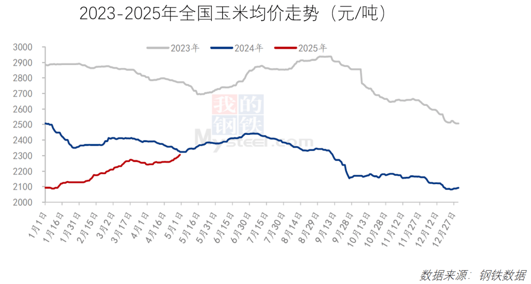 分地區來看,東北地區月初價格上漲明顯,月中企穩,受北方港口收購價及期貨價格上漲影響,產區貿易商惜售情緒濃厚,月底玉米收購價格持續上漲;華北地區價格先穩後揚,下旬因基層糧源收購困難、渠道庫存消耗殆盡,貿易商挺價惜售,疊加小麥主產區乾旱引發玉米替代需求升温,價格加速攀升;南方銷區則跟隨產區及期貨走勢,月末價格漲勢進一步擴大,形成全國普漲格局。