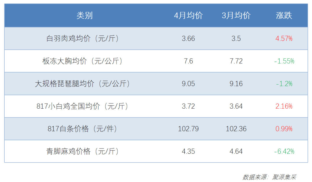 4月生豬市場格局為養殖端增重,屠企增量。5月隨着天氣炎熱,養殖難度稍有增加,市場養殖規模場和散户會加速出欄,疊加二次育肥的出欄需求,但終端消費仍表現一般,預估5月生豬供應表現為增量,價格重心偏弱運行。
