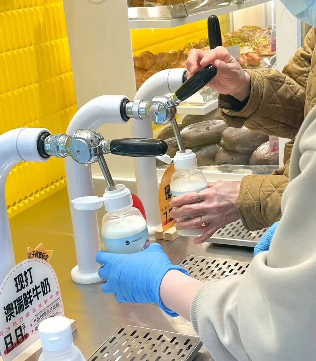 一鳴真鮮奶吧最鮮明的特點就是“乳業+烘焙”的融合玩法,像傳統乳製品企業往往以鮮奶、酸奶等單品為主,而烘焙行業則聚焦麪包、糕點等高毛利產品。而一鳴真鮮奶吧的突破在於將兩者結合形成“乳品+烘焙”的複合模式,不僅滿足消費者對新鮮乳製品的即時需求,又通過烘焙產品提升客單價與復購率。比如經典產品組合“鮮奶+麪包”不僅符合早餐場景,而且還有便捷、營養豐富等特點,所以格外受消費者歡迎。