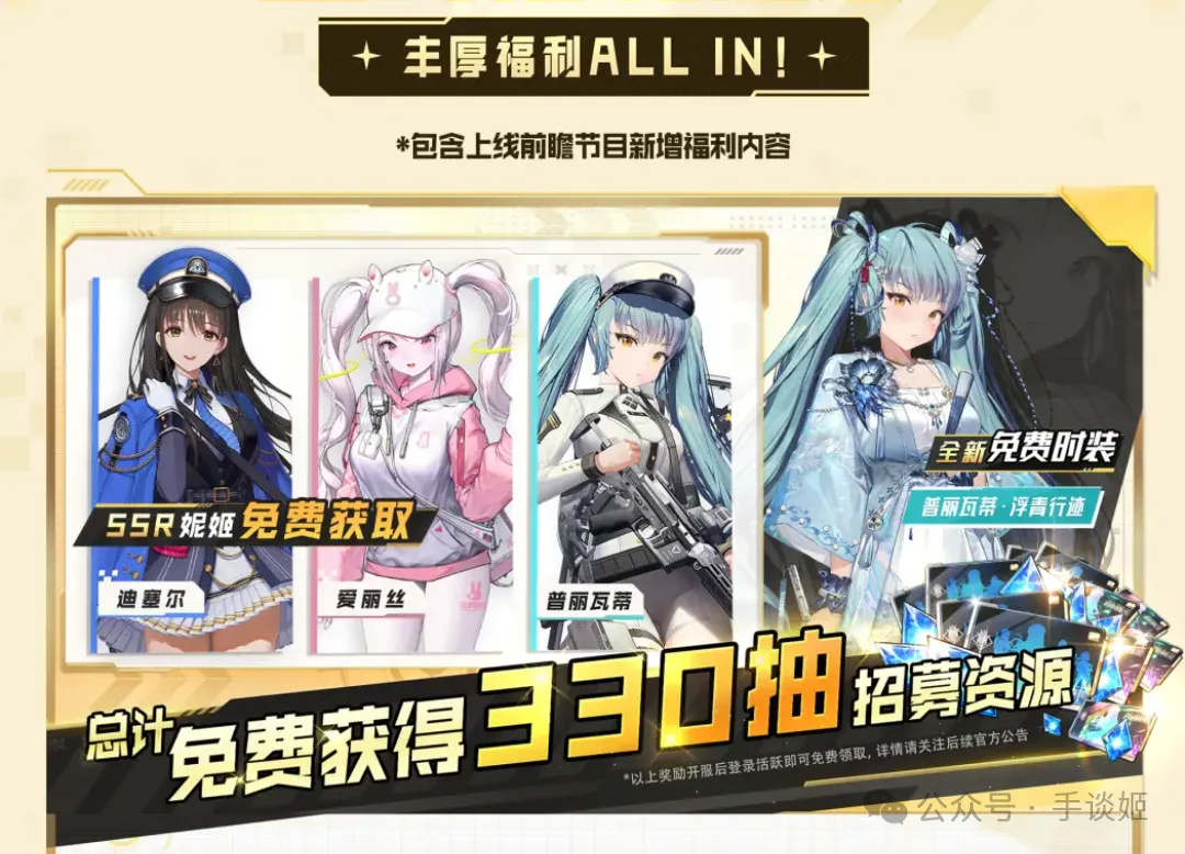 還真是什麼都逃不過真香定律啊。不過口碑能發生如此大轉變的遊戲在二遊圈子裏也是非常罕見的了,估計當時很多人被官方放出了福利驚到了,於是想來試試遊戲,畢竟免費330抽外加4個最高品級角色(含魯德米拉)在這裏,放在國服遊戲裏算是頂級福利了吧?