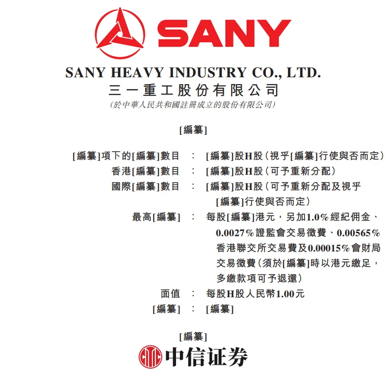 據港交所近日披露, 三一重工股份有限公司向港交所主板遞交上市申請,中信證券為獨家保薦人。截至5月23日收盤,三一重工(600031.SH)報18.91元/股,市值1602.62億元。