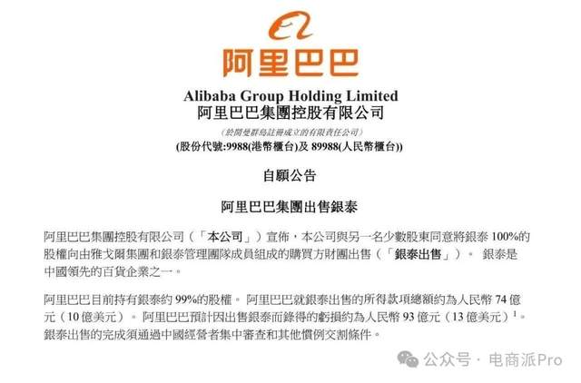 去年12月,阿里宣佈以約74億元的價格,將目前持有的銀泰股權出售給雅戈爾集團和銀泰管理團隊成員組成的購買方財團;此後今年1月,阿里又宣佈子公司及New Retail與德弘資本達成交易,以最高約123億元的價格出售所持高鑫零售全部股權,合計佔高鑫零售已發行股份的78.7%。