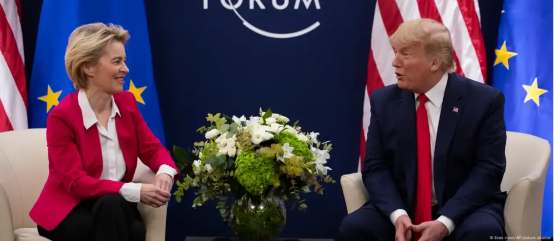 2020年達沃斯經濟論壇上特朗普與歐盟委員會主席馮德萊恩。(圖源:美聯社)