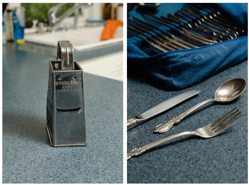 戴安娜·哈夫 (Dianna Huff) 家中的美國製造的奶酪磨碎器和餐具。