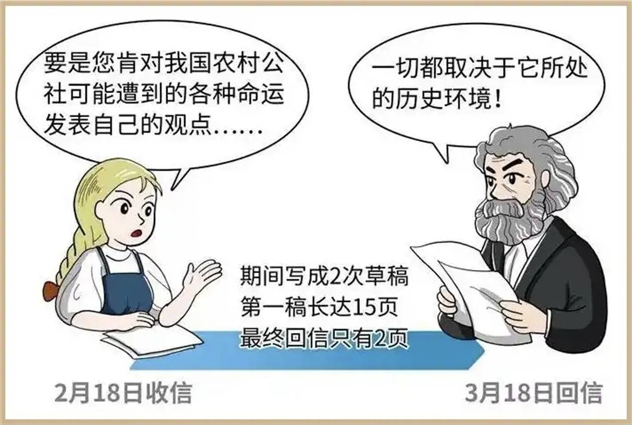 問題是,致查蘇利奇的信的重點在於對俄國農村公社的性質及其未來命運(這種歷經千年風雨仍然較完整保留下來的公有制是不是一定會被資本主義發展所毀滅?能否成為俄國社會主義的基礎?)進行了更為具體細緻的分析,而且三易其稿,又將草稿中的這些分析通通刪掉了,而只是給了一個簡短的結論:
