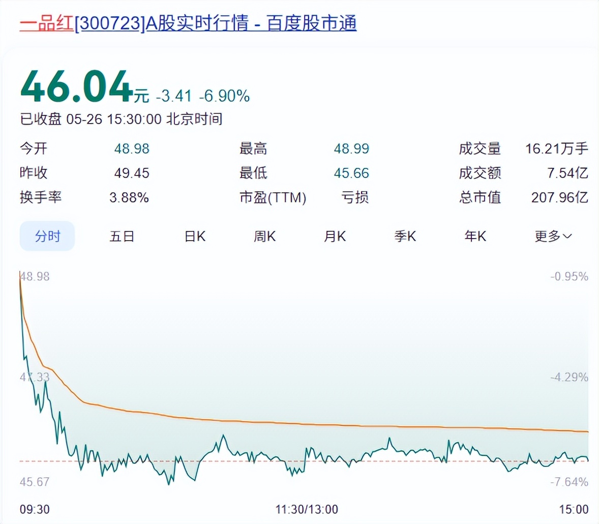 或許也是基於上述風險的客觀存在,一品紅的股價又顯現出下跌趨勢,截至5月26日收盤,報46.04元/股,下滑6.9%。
