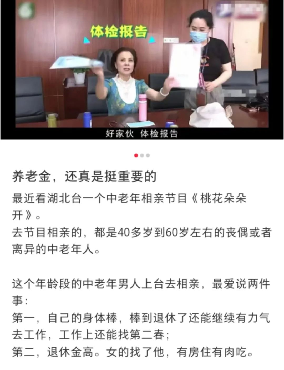 節目裏,有人一上來就甩體檢報告:“三高沒有,肝腎健康,不用你養”;