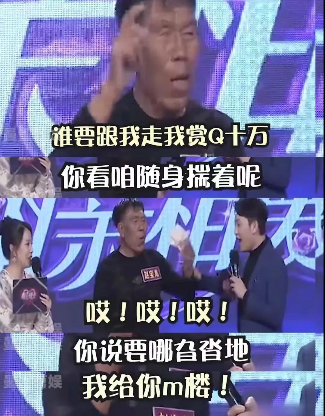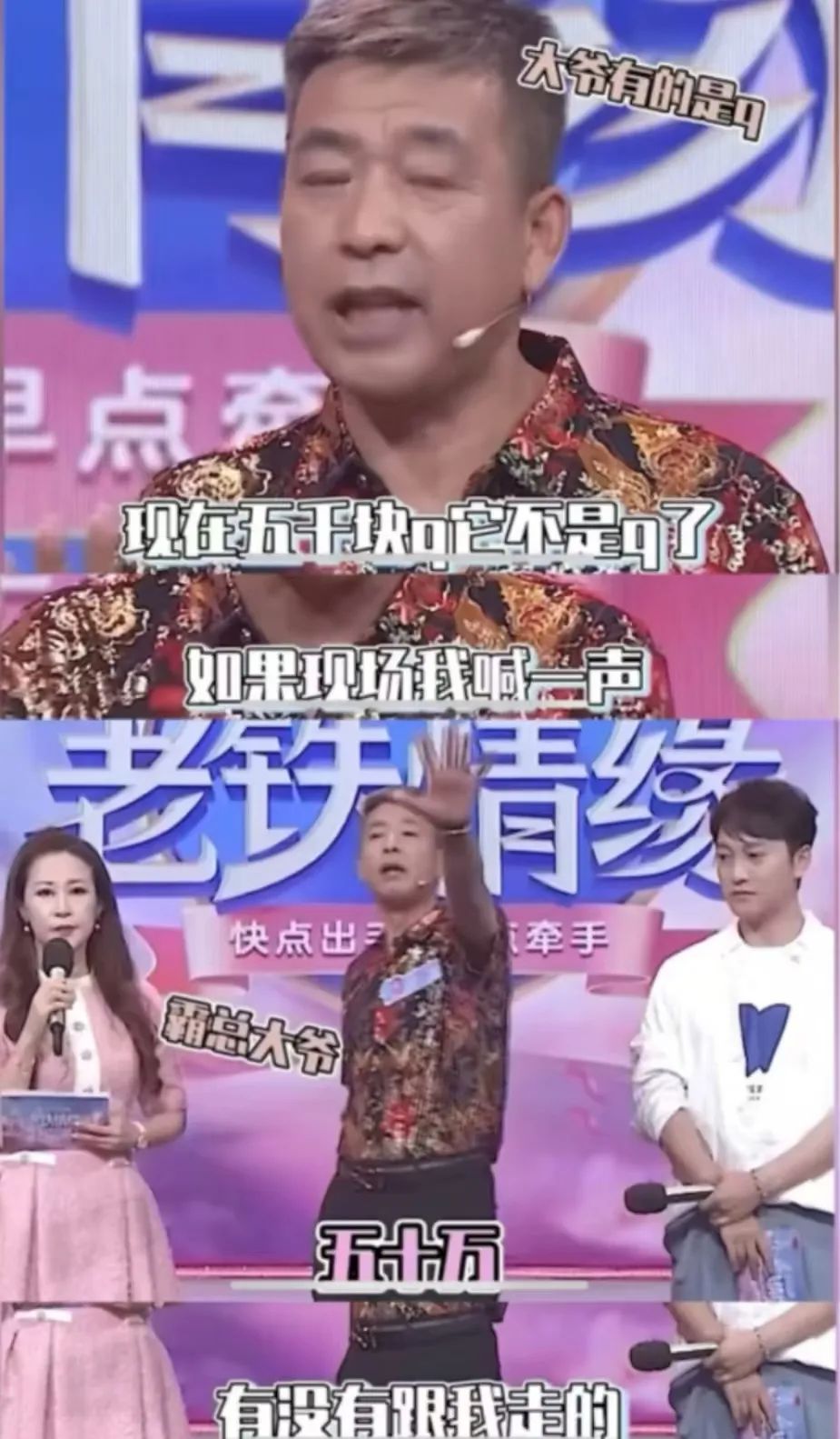趙大爺,今年67歲,西裝挺括,金鍊子閃亮,一上節目就自帶大佬氣場。