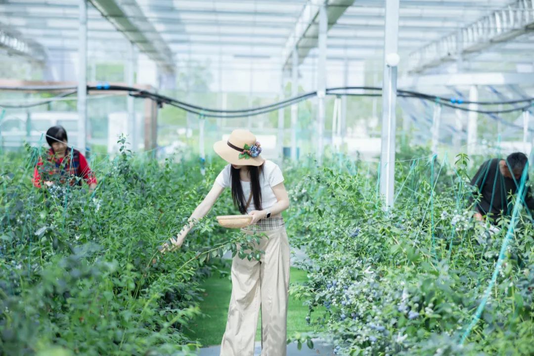 比如,魯溧藍莓農場創辦人王曉亮就回憶,去年來村裏投資時,只看了一眼就定了下來,因為村裏給的條件實在太好:農場就在村裏的產業園,大棚剛建好,還配了免費使用的水肥機,直接把苗木搬過來就可以生產;大棚調試、維修、維護,村裏自有團隊,隨叫隨到;村裏為配送和品牌宣傳需求,還承包了一定銷量,而村裏自有文旅流量,發展採摘也不在話下;農場可免費使用“鵝村藍莓”品牌,連一攬子的包裝、設計方案都是免費的;這不,前不久村裏還聯繫了自媒體前去拍攝、宣傳,同樣免費。