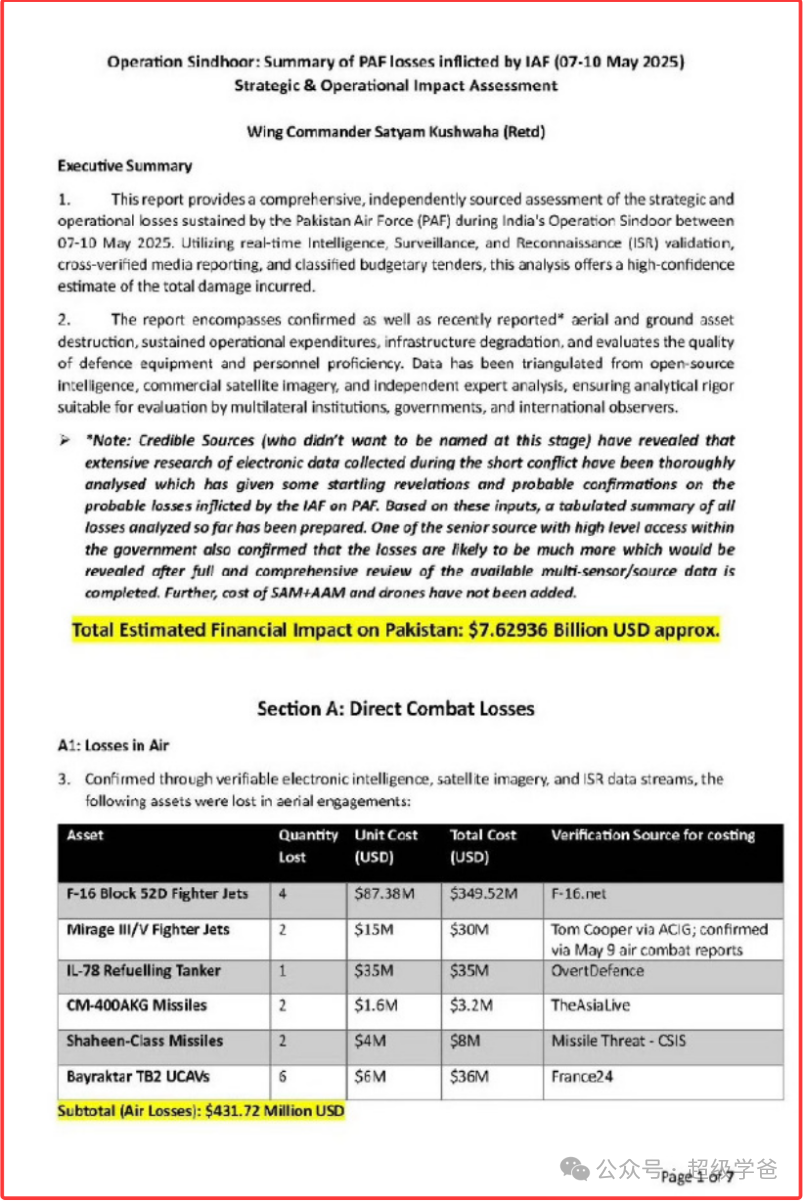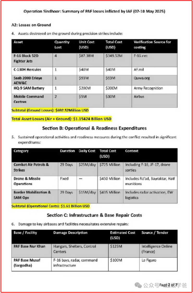 除此之外,印度説在空戰中還擊落2架幻影5戰機、1架伊爾-78 運輸機、1架C-130H、1架薩博2000、一枚HQ-9。