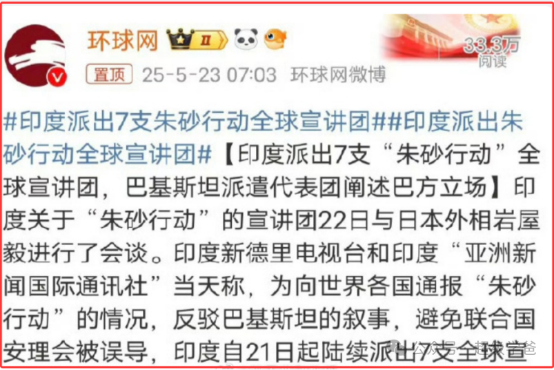 當我們對印度騷操作已經目瞪口呆的時候,印度更騷的操作來了——向全世界派出了七個宣講團,進行巡迴宣講,非要把印度的輝煌戰績説給全世界……