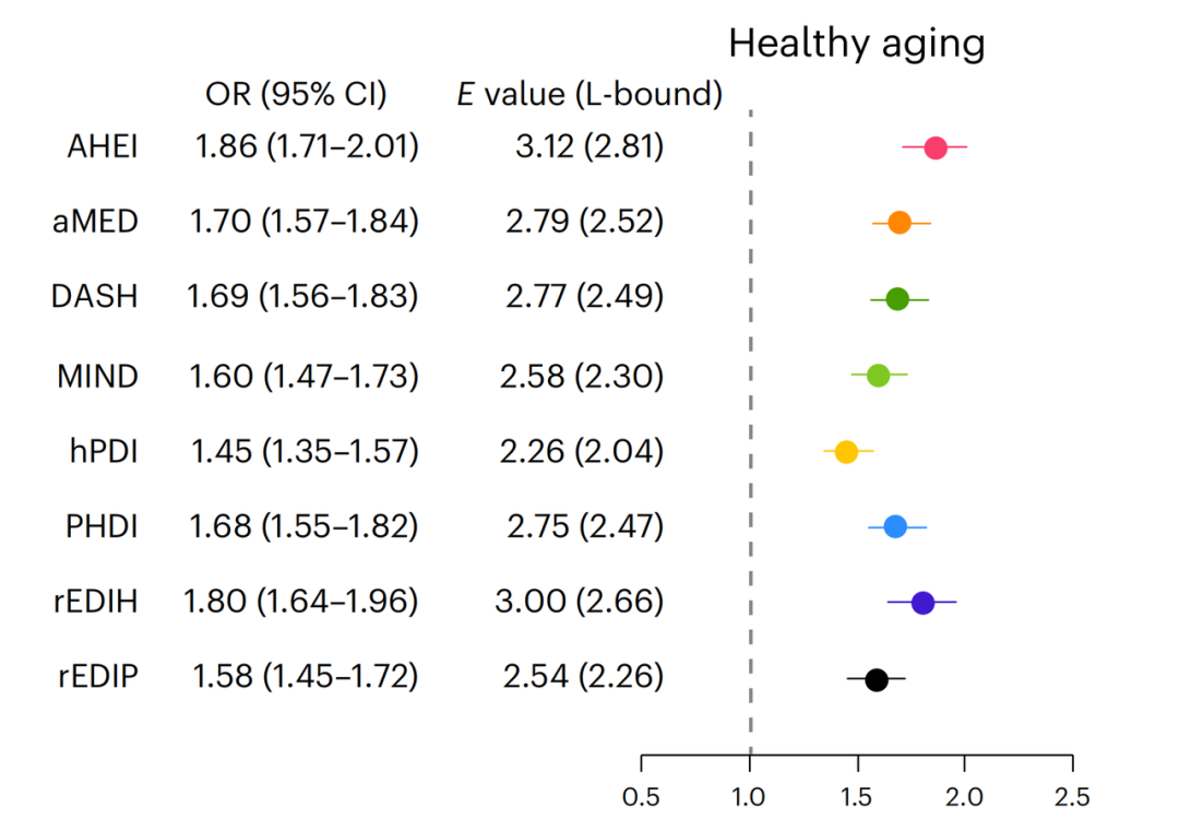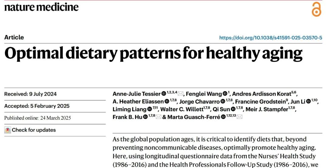 最近發表在著名期刊Nature Medicine上的這項研究,利用飲食問卷數據,探討了長期維持8種飲食模式和超加工食物,對健康老齡化的影響。