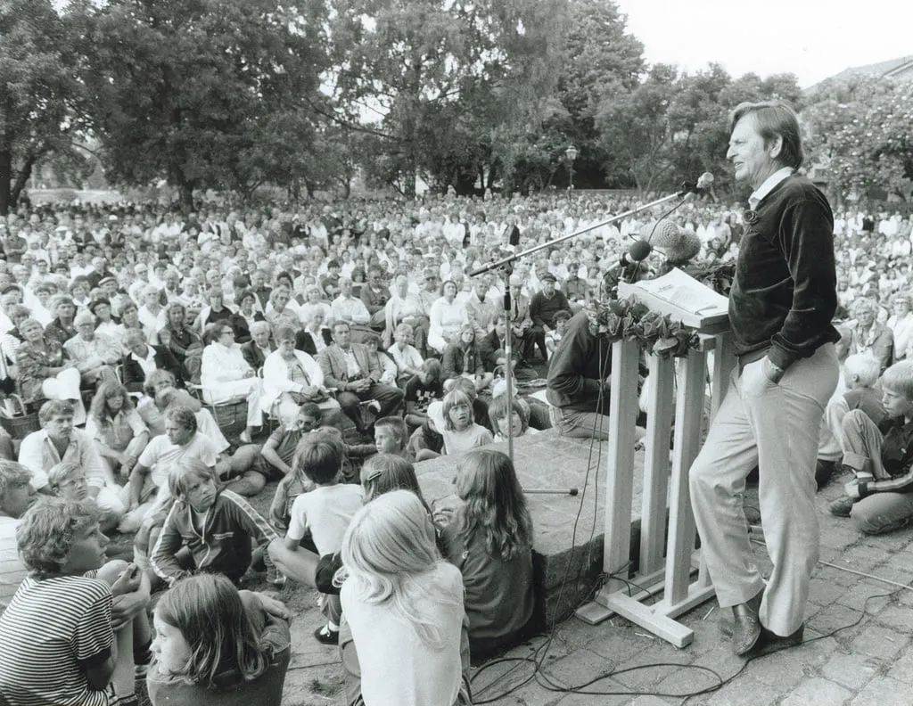 1968年,時任瑞典首相奧洛夫·帕爾梅在阿爾梅達倫公園發表演講,為如今每年夏天舉辦的的阿爾梅達倫周(一項大型政治和社會活動,瑞典最重要的政治盛會之一)奠定了基礎(圖源:瑞典外交部)