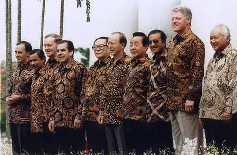 1994年,APEC峯會在印度尼西亞召開,各國領導人身着印尼特色服裝“Batik”蠟染襯衣合影(圖源:央視新聞)