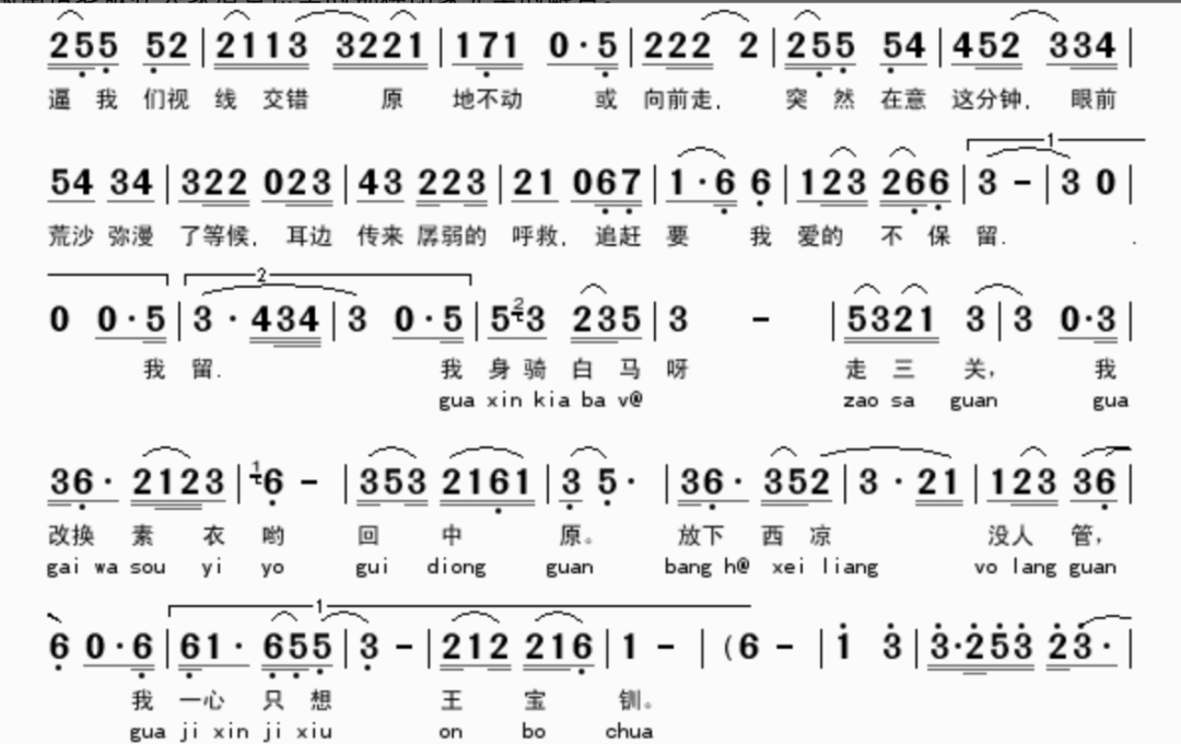 (注意這首歌進入副歌前大量採用了4、7音,而副歌之後則是完美的五聲音階)