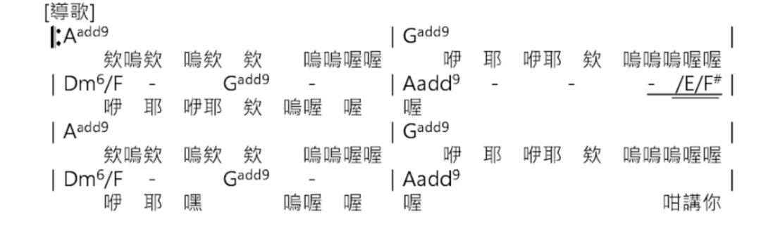 從和聲來看,《你啊你啊》的和聲是一種較為漂亮的流行歌曲和聲結構。