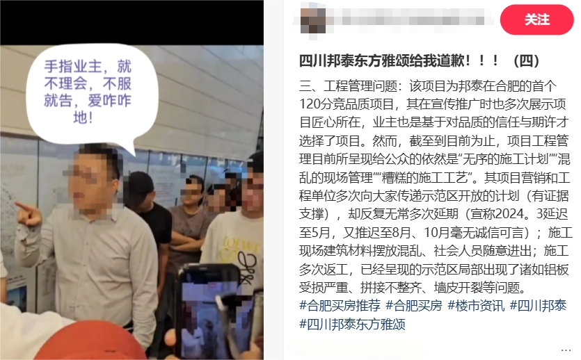 東方雅頌是邦泰進軍合肥的首個項目,2023年開盤,因為優質的地段以及宣傳中的高品質,受到市場追捧。