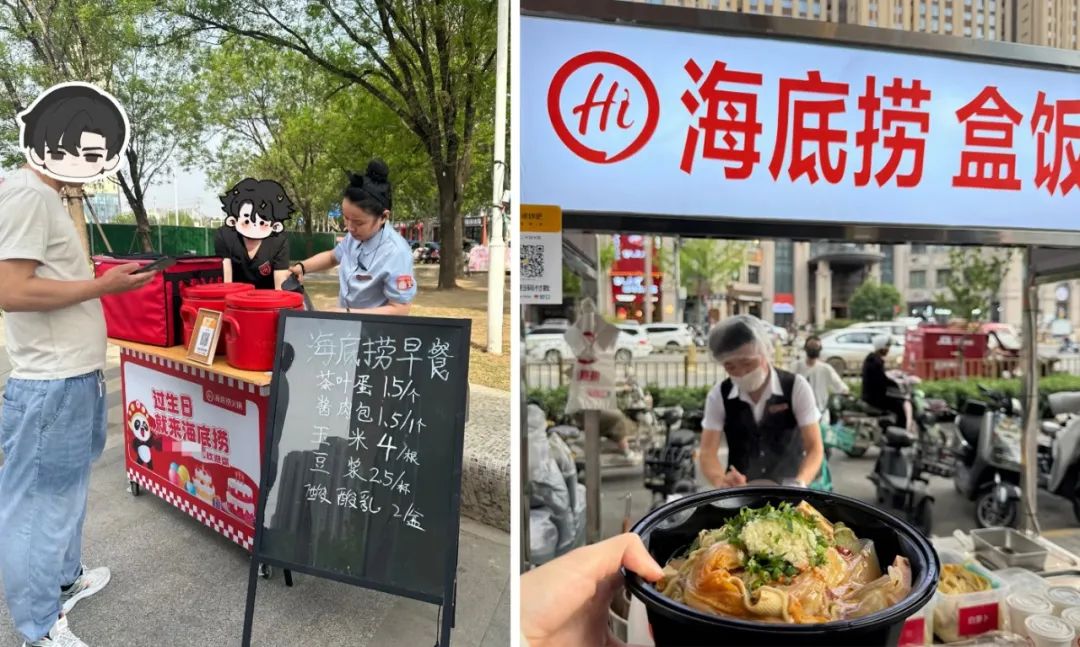 其實不止是夜市,海底撈也把地攤延伸到了寫字樓、社區等地,售賣15元實惠“盒飯”午餐、6元早飯套餐等,消費者給出的評價是“品質不孬,價格不飆”。
