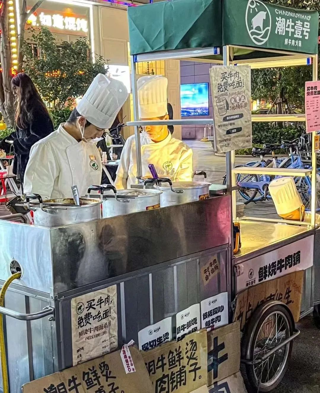 武漢的潮牛壹號鮮牛肉火鍋,也很會玩,推出“鮮燒牛肉鋪”,買牛肉免費吃麪,好比吊龍泡麪,“這個配置也太高了”,撫慰了每個加班族深夜空虛的胃,除了牛肉麪,還有鮮燒鍋仔,可算是把產品優勢玩明白了。