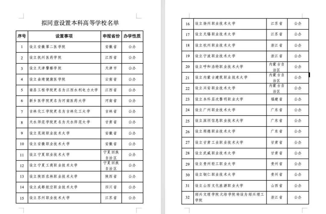 ✎ 擬同意設置本科高等學校名單 圖源:教育部官網