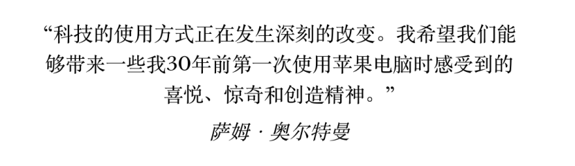 **它將是小巧的、不引人注目的、無屏幕的,能夠完全感知用户的生活和周圍環境,**並將成為繼MacBook和iPhone之後人們擺在辦公桌上的“第三大核心設備”。