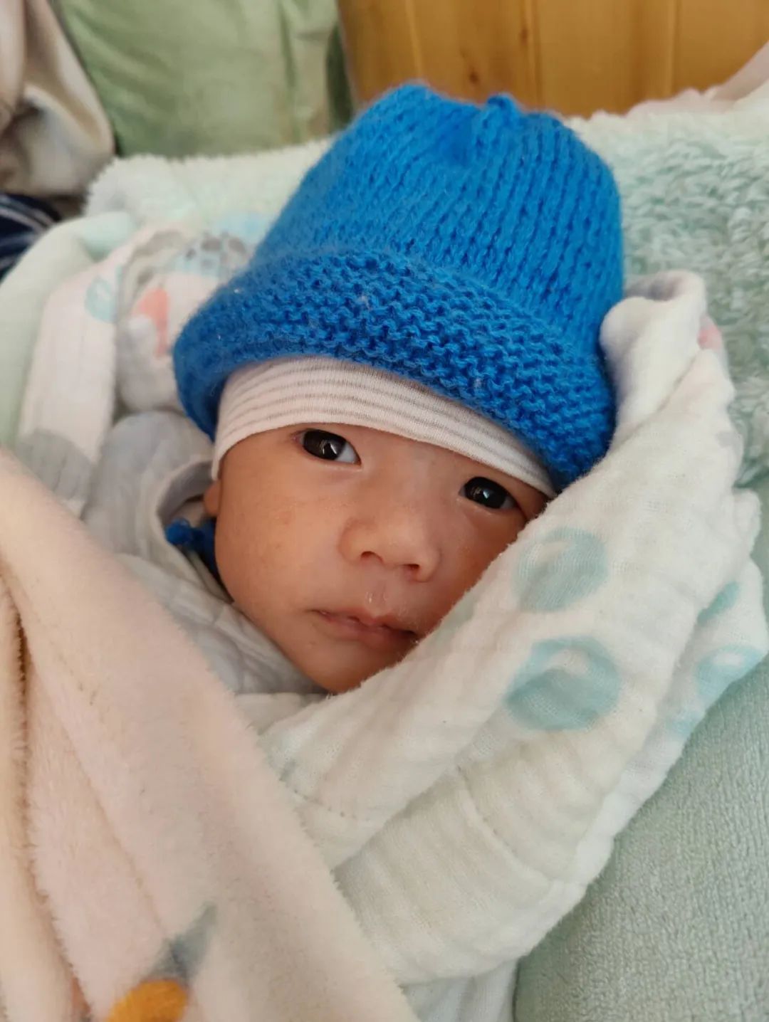 ▲這是我還未滿月的拉達克侄子,身上的衣服、裏面那頂帽子、裹着的小被子,全都是妹妹小時候的。從親膚感上來講,他頭上這頂藍色羊毛帽肯定不如裏面的全棉小帽