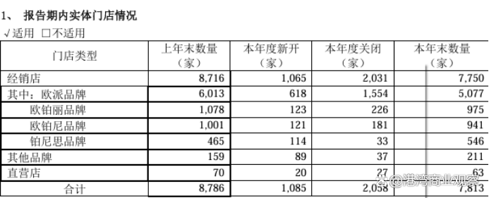年報還顯示,截至2024年末,公司門店數量有7813,經銷店有7750家;而上年末公司門店數量有8786家,經銷店有8716家;2024年新開門店1085家,關閉門店2058家。