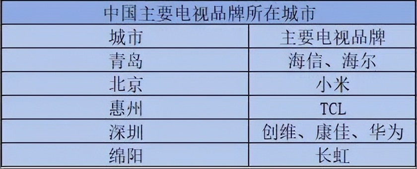 梳理中國主要的電視品牌所在地,正解局發現,這些品牌,要麼集聚在北京、深圳、青島這樣的一二線城市,要麼是惠州這樣的珠三角區域,只有長虹,偏居西部的三線城市。