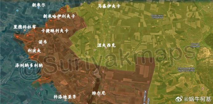2、紅利曼:俄軍向赫雷基夫卡小幅推進,並擴大了新米哈伊利夫卡的控制區,還向裏德科杜布和利波夫以南推進。此外,俄軍還佔領了澤列納多利納南面的一系列陣地。