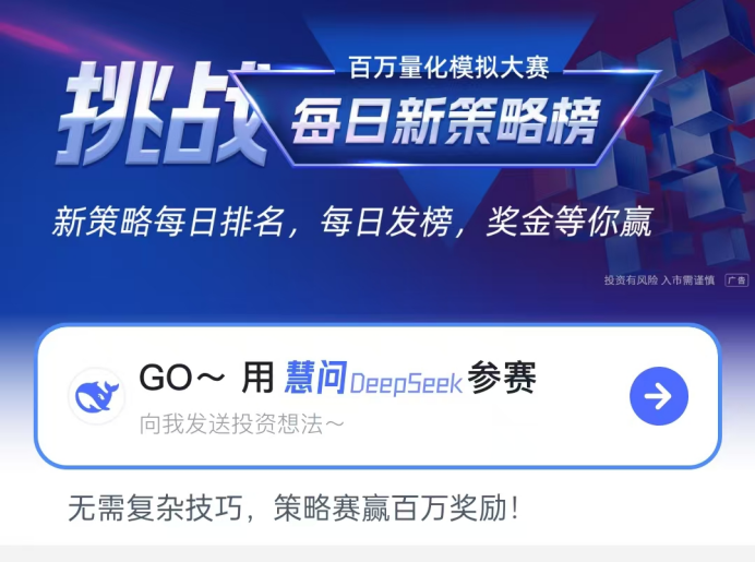 此次AI量化策略模擬大賽是基於大智慧交易終端V10.0版、新增的AI量化策略功能“慧問”展開的。該功能模塊通過接入Deepseek大模型,實現了自然語言交互、超算級數據處理及普惠化量化工具三大突破,推動了個人投資者與機構在智能投資領域實現“平權”,此舉也標誌着投資模式從“人找信息”向“信息為人”轉變。