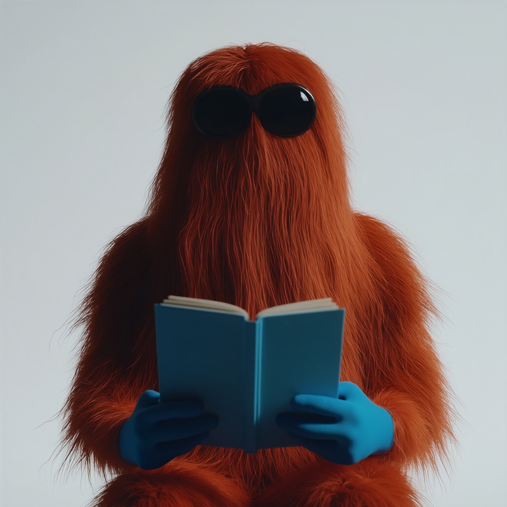 這是一隻橙紅色長毛覆蓋全身,總愛用黑色墨鏡罩住面部的“神秘”形象,氣質散發着朋克與不羈。