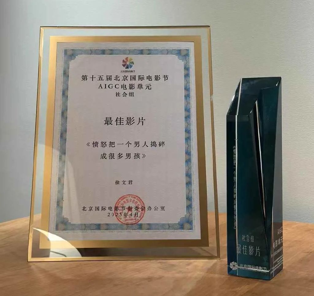 △ 《憤怒把一個男人搗碎成很多男孩》榮獲北影節 AIGC 電影單元社會組“最佳影片”獎