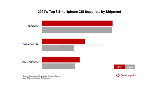 索尼在2024年保持領先地位,同比略有增長,主要得益於產量提升和高端智能手機需求增長。索尼憑藉高端智能手機需求和工藝改進保持領先地位。
