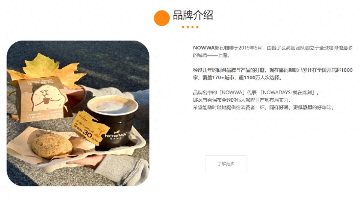 公開資料顯示,挪瓦咖啡成立於2019年。最開始以“店中店”模式發展,即挪瓦咖啡與有食品營業執照的實體店合作,挪瓦咖啡負責提供機器、物料、供應鏈等,滿足消費者外賣和即買即走的需求。2022年,挪瓦咖啡開始在全國擴張獨立門店,並開放加盟。官網介紹,目前,挪瓦咖啡已在全國170多個城市,開設了超1800家門店。