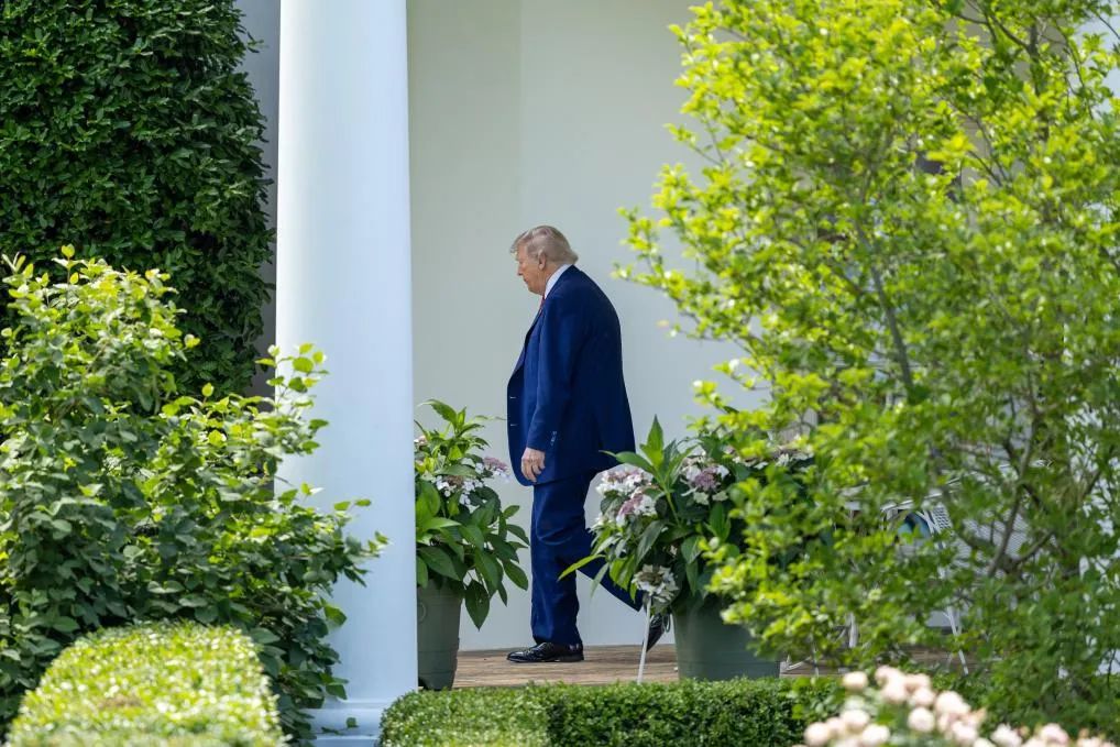 5月23日,美國總統特朗普走向白宮南草坪。圖源:新華社