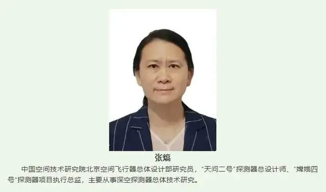 還有一個重要部分要説的,就是天問二號探測器總設計師名叫“張熇”,説名字大家也許不記得,但是一張照片曾經引起廣泛關注。那時候,這位女總師還是嫦娥四號探測器項目執行總監和副總設計師。