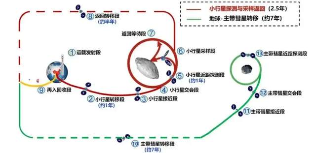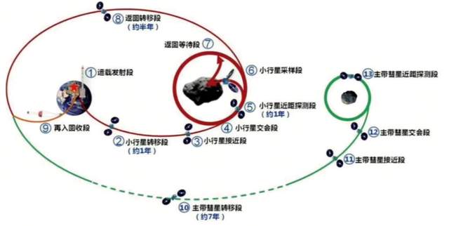 完成此次任務後,探測器藉助地球、火星的引力加速,歷經約 7 年飛行,奔赴小行星帶,對主帶彗星 311P 展開繞飛探測。
