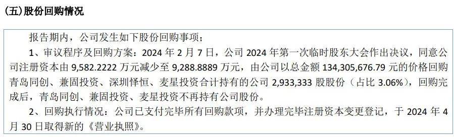 為了順利推進公司於北交所上市,平衡各方股東利益,經公司股東大會審議通過,同意回購估值最高的C輪投資人所持有的公司股份,並相應減少公司的註冊資本。