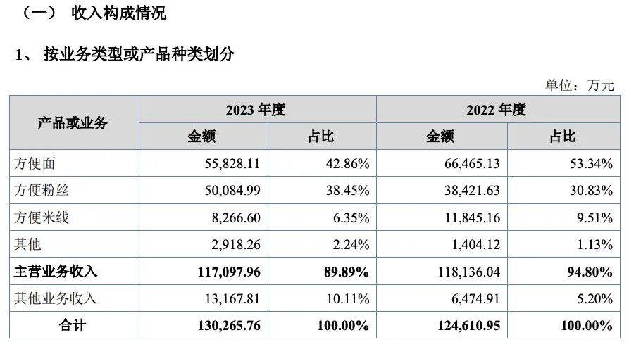 招股書顯示,2022年,阿寬食品方便麪銷售收入高達6.65億元,在其總營業收入中佔比54.34%。然而2023年,方便麪銷售收入下滑到了5.58億元,雖然2024年重新增長到了5.99億元,可與2022年相比仍有一定的差距。