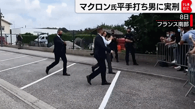 根據法國法律,襲擊總統是要負刑罪的,2021年,在法國南部出手打臉馬克龍的這名男子就被判了1年多。