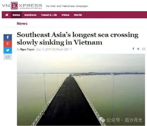 當時越南媒體報道,跨海大橋看上去正在“緩緩下沉(sinking)”