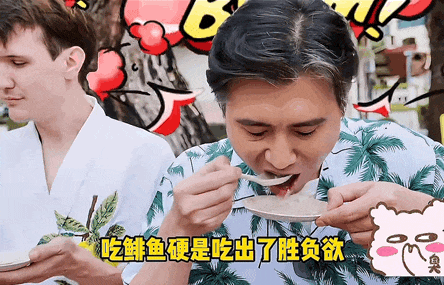 為了勝負欲,他還一邊忍着吐一邊塞進整塊鯡魚。